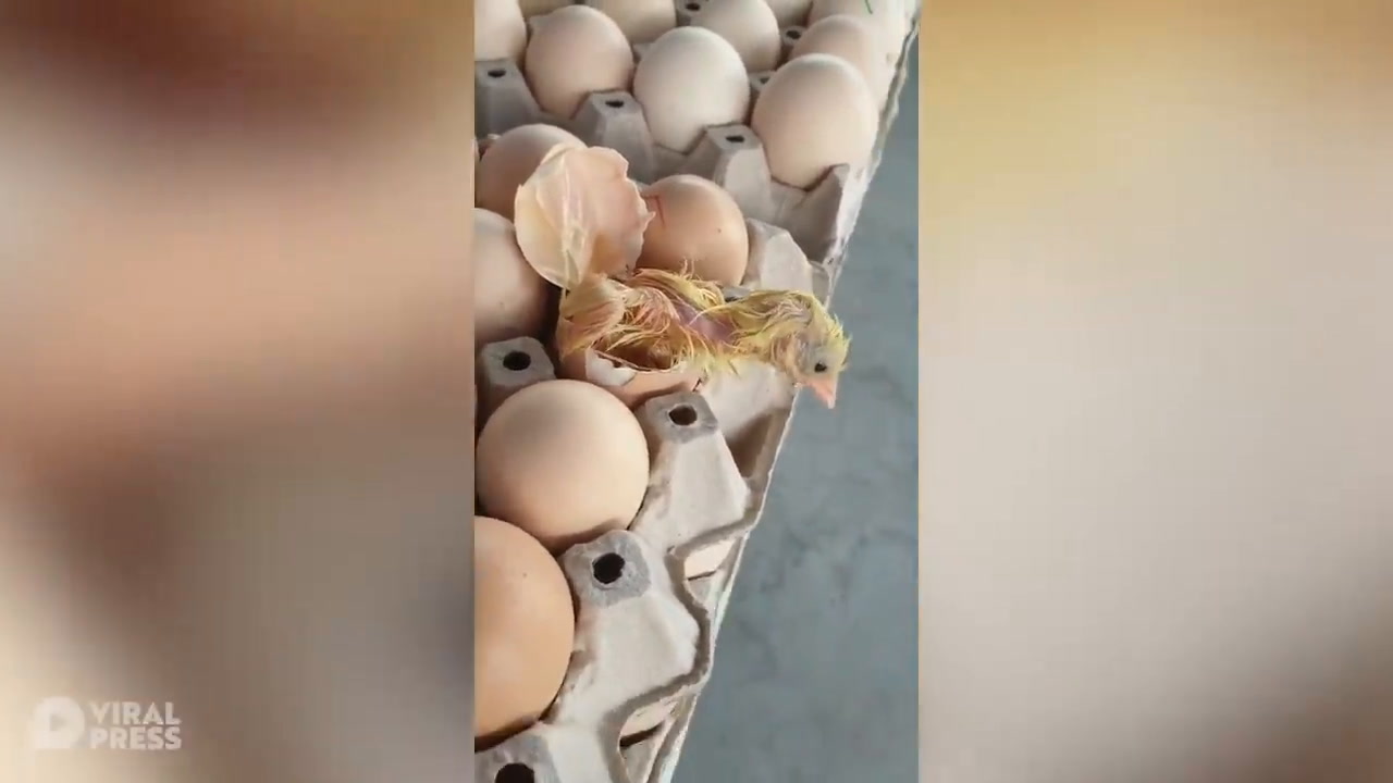 Un video muestra al pollo recién nacido aún dentro del huevo
