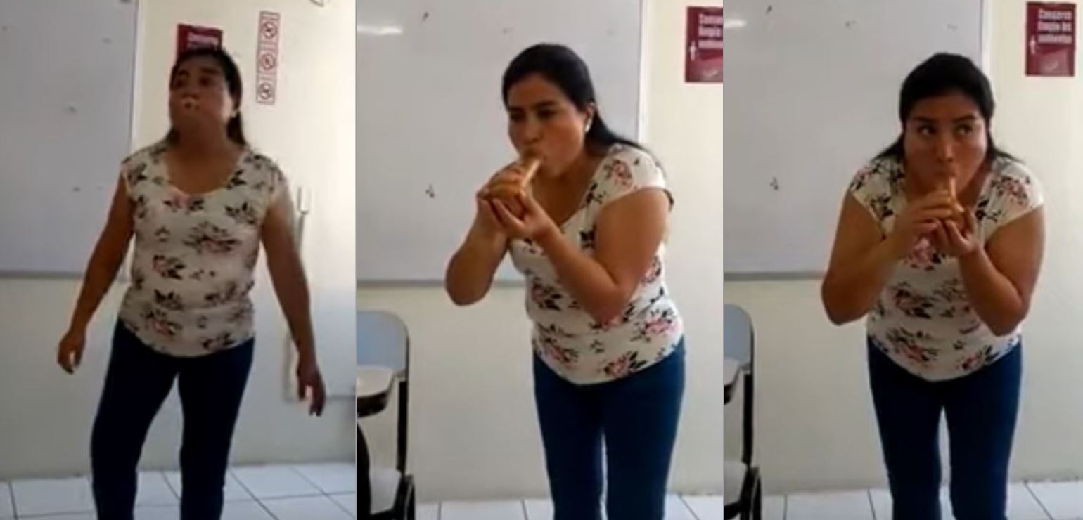 En las imágenes se puede ver a la docente poniendo el condón con la boca sobre un falo de plástico, ante la mirada de sus alumnos.