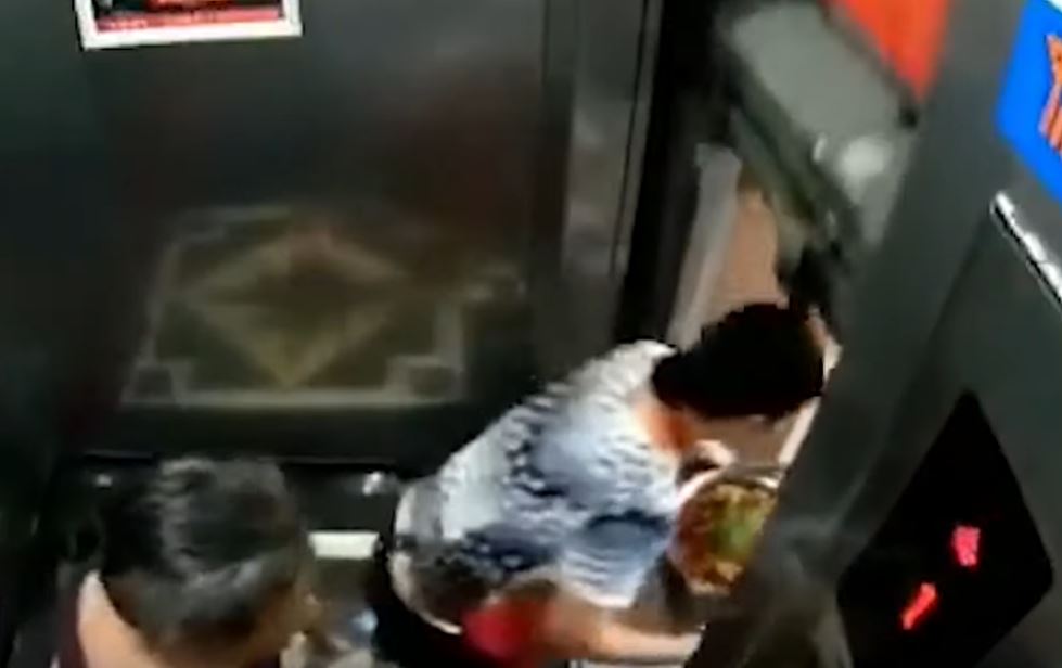 La mujer saltó cuando el elevador se movió y evitó ser aplastada