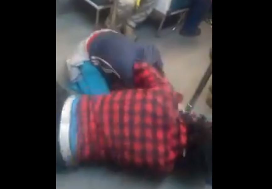 A través de un video difundido en redes sociales se puede ver el momento en el que la mujer acusa al hombre por haberla golpeado y arremete en su contra, tirándolo a suelo, sin que ninguno de los testigos o algún policía interviniera para separarlos.