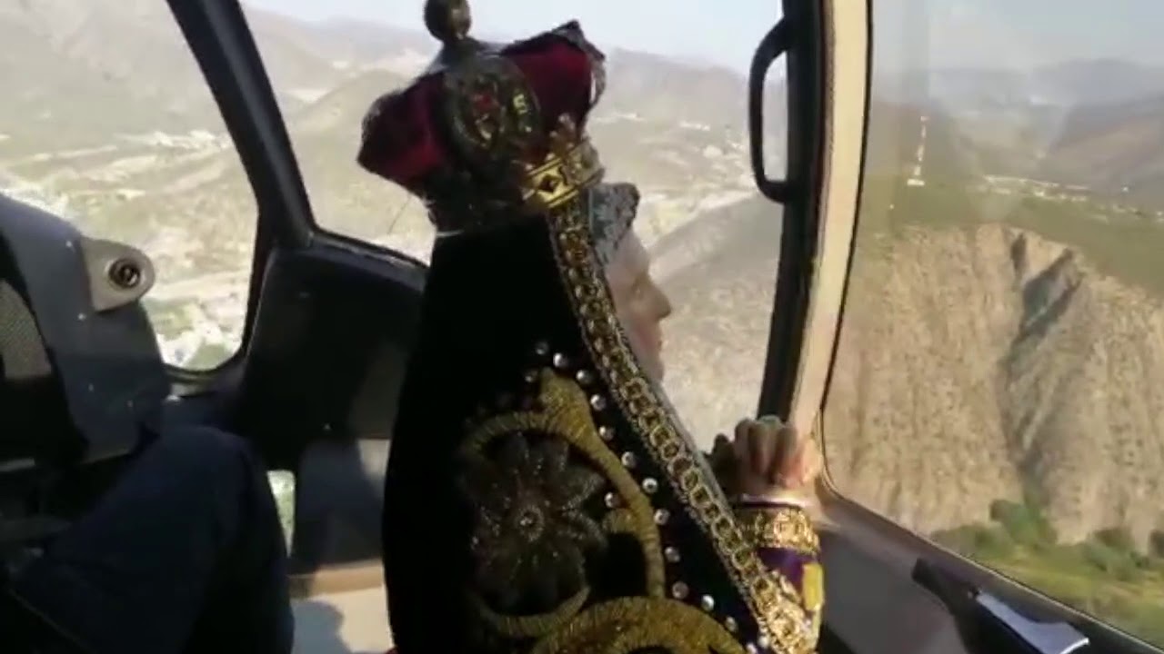 José Martín Lara Becerril, vicario general de la Diócesis de Querétaro, voló junto con una imagen de la Virgen de los Dolores de Soriano, patrona del estado, y el “Santísimo Sacramento” para bendecir al mismo.