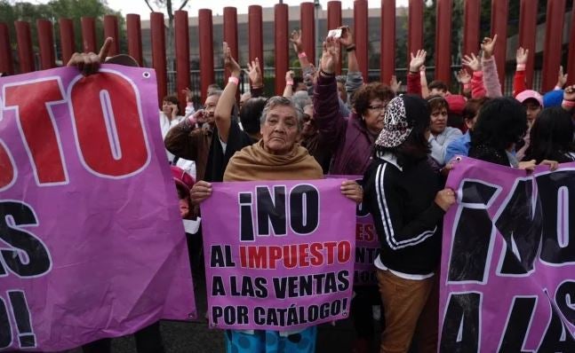 “Lo que queremos es que nos ayude secretario, yo no sé si usted tuvo familia, amigos, vecinas, pero le queremos decir que no pongan el impuesto a todas las mujeres que venden por catálogo, hoy hicimos esta manifestación pacífica, son mujeres, principalmente de la Ciudad de México que se dedican a vender por catálogo”, expresaron las inconformes.