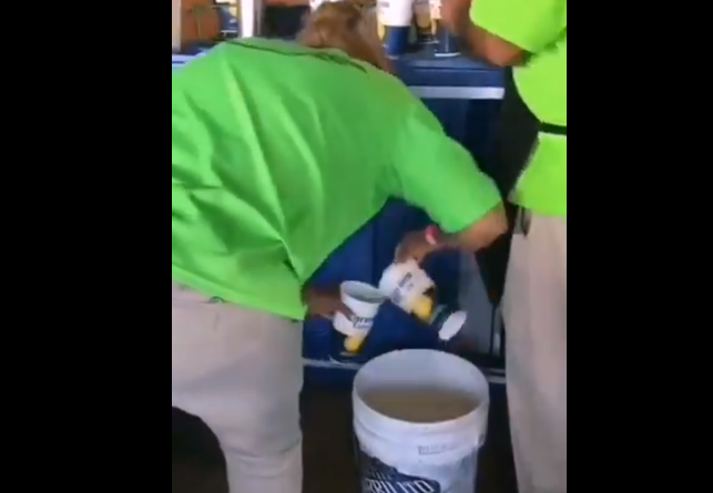 Los empleados sirven una y otra vez “cerveza” a los consumidores dentro del estadio, sin tomar en cuenta alguna botella, envase o lata de cerveza.