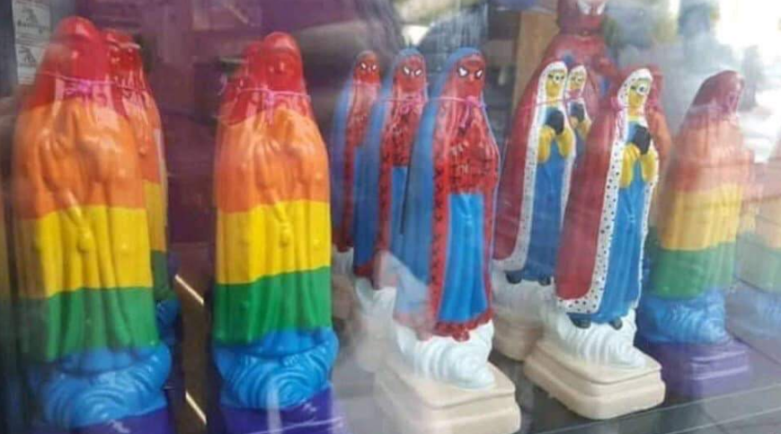 Mexicanos crean estatuillas de la Virgen María con los colores de la bandera gay